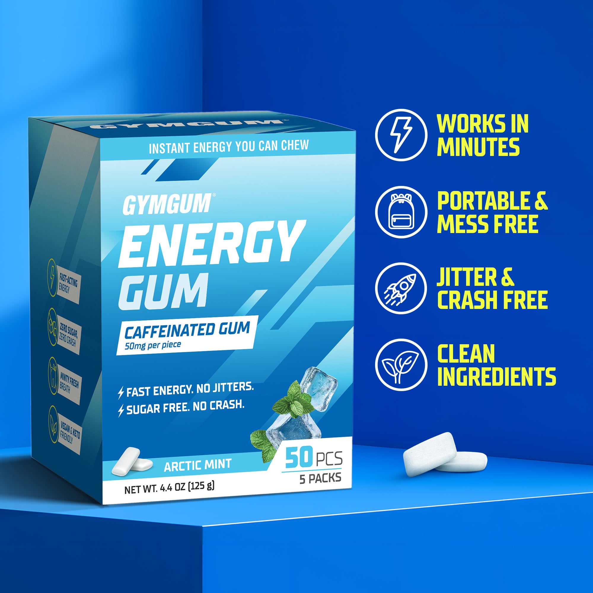 GYMGUM.Energy Gum is made with proven functional ingredients for fast, clean energy—without the mess of drinks or powders.